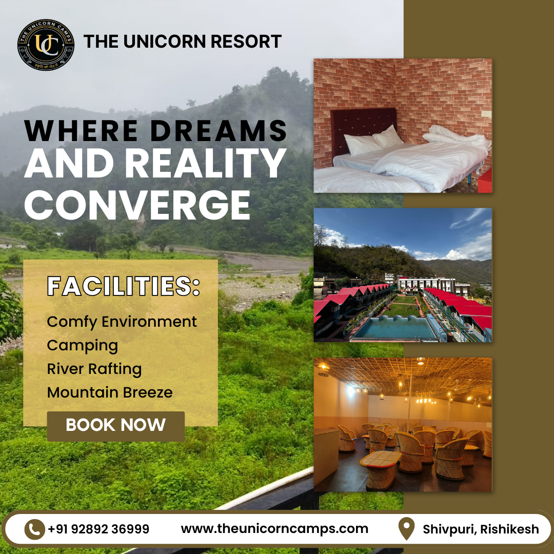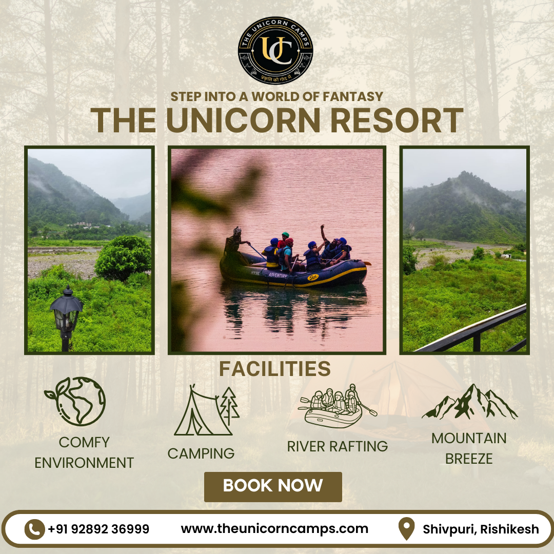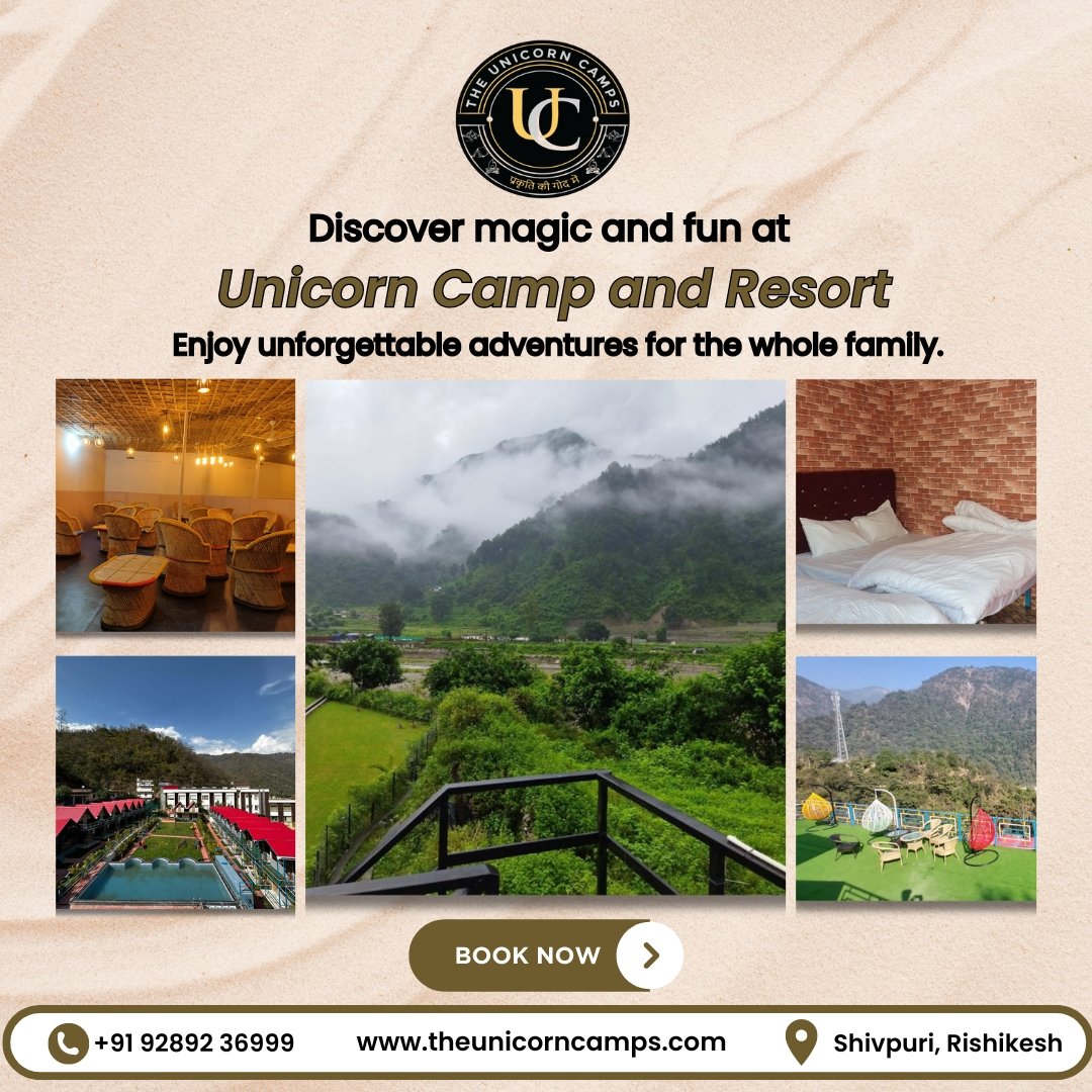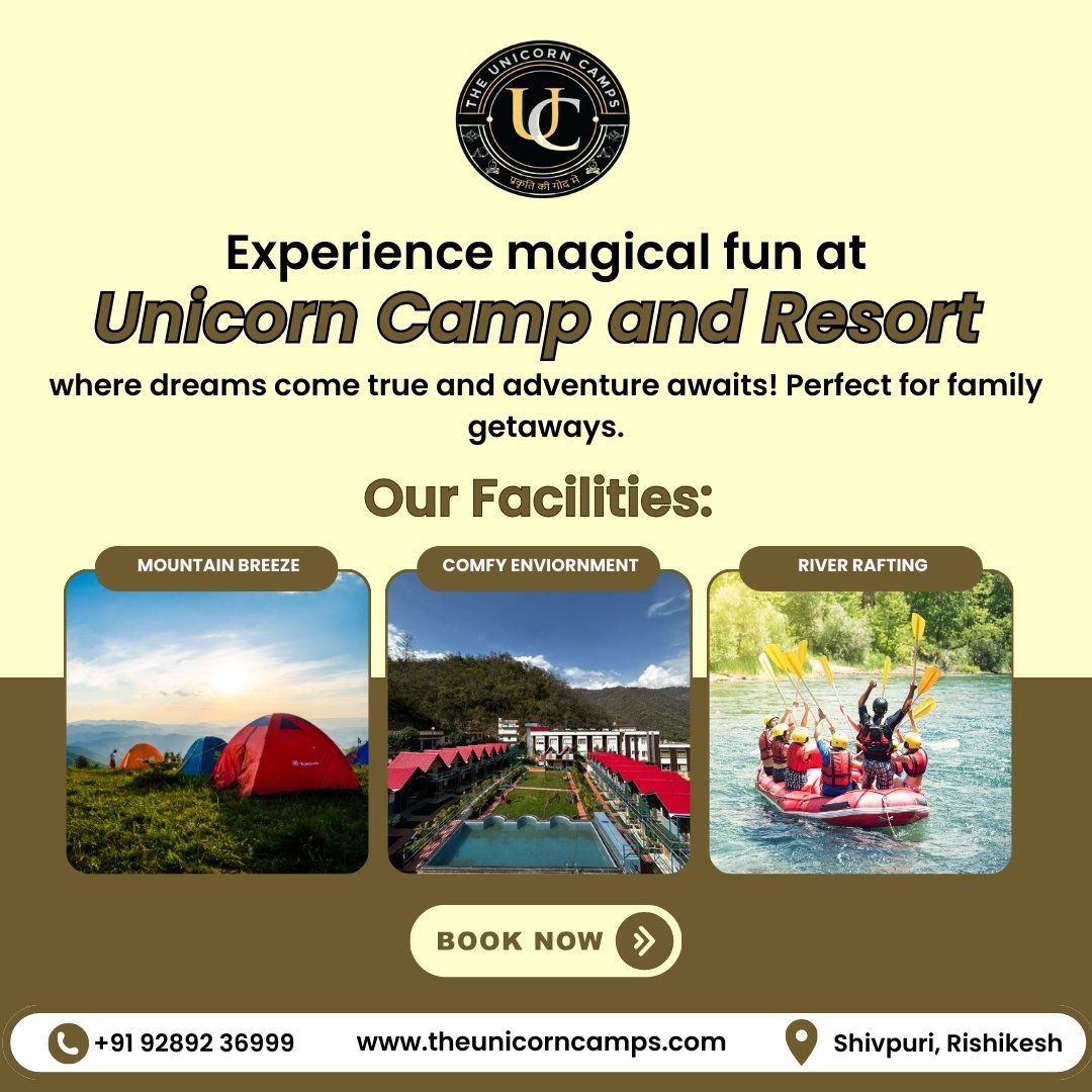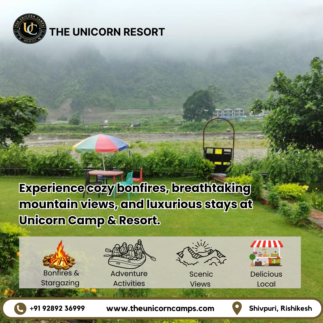 Unicorn Camps Shivpuri Rishikesh offers a perfect mix of nature, comfort, and adventure on the banks of the Ganga in Uttarakhand. Recognized among the best Unicorn camps in Rishikesh, we provide clean, safe, and well-maintained stays for families, groups, and adventure seekers. If you are searching for a scenic camp in Rishikesh or a peaceful camp in Shivpuri Rishikesh, Unicorn Camp is an ideal choice. Enjoy comfortable riverside tents, delicious meals, bonfire evenings, and exciting activities like river rafting in Rishikesh, trekking, and guided camping experiences. Our Unicorn camps Rishikesh are perfect for all age groups, making us a popular family camp near me and a trusted option among camps near me searches.